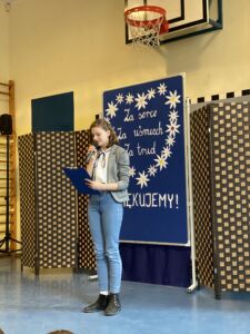 11 października odbyła się w naszej Szkole uroczystość z okazji Dnia Nauczyciela. W imieniu całej społeczności uczniowskiej serdeczne życzenia wszystkim pracownikom złożyła Przewodnicząca Rady SU Alicja Gęba. Głos zabrała także p. Anna Paczull – Prezes Samodzielnego Koła Terenowego nr 191, organu prowadzącego naszą Szkołę, a zaraz po niej przedstawiciel Rady Rodziców.