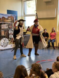 3 października po raz kolejny gościliśmy w naszej szkole członków Teatru Historycznego „Chorągiew Komturstwa Gniewskiego”.Tym razem grupa rekonstrukcyjna zaprezentowała aż dwa spektakle. Uczniowie klas IV-VI przenieśli się zatem w czasy średniowiecznych rycerzy, natomiast młodzież z klas VII-VIII odświeżyła swoją wiedzę na temat walk o niepodległość Polski w latach 1795-1914.
