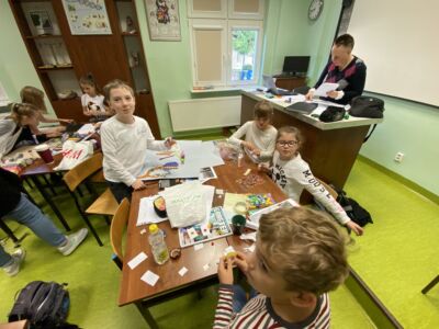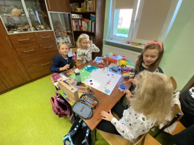 Klasy czwarta miała za zadanie stworzyć grę planszową i wykorzystać w niej zdjęcia oraz stworzyć zadania odnoszące się do wiadomości z Zielonej Szkoły.