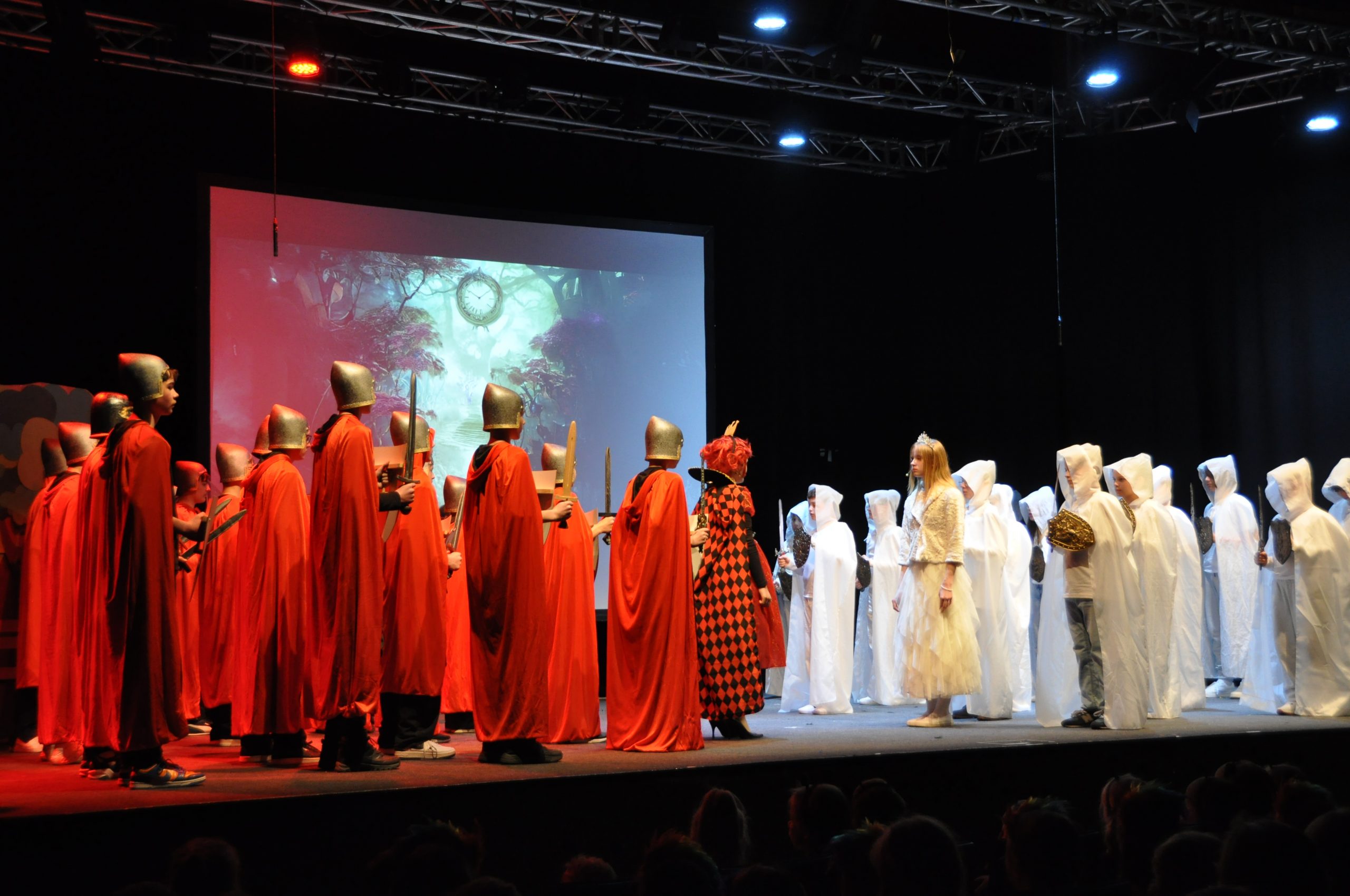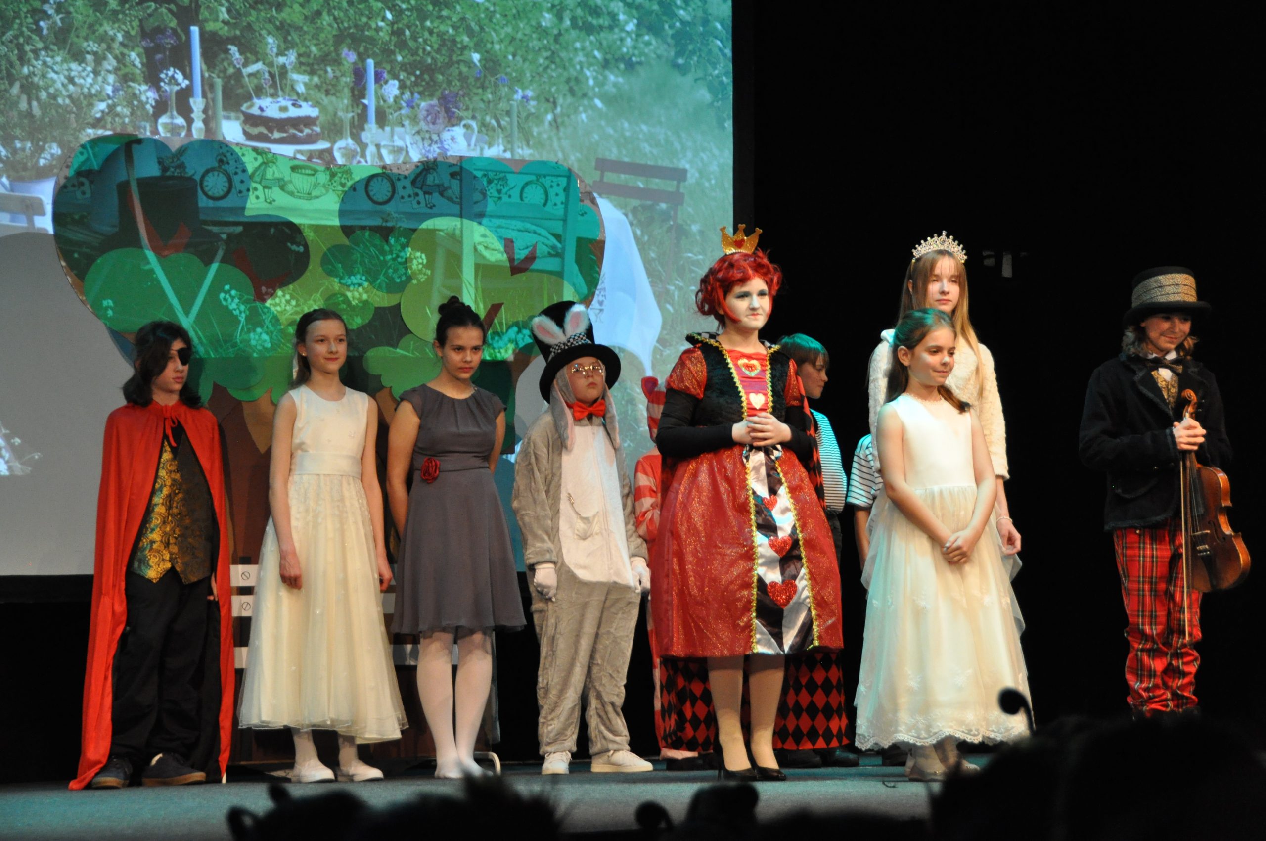 Przeżyć dostarczyły nam zarówno sceny zbiorowe, zachwycające kolorami i choreografią, jak i porywająca gra poszczególnych aktorów – fantastyczna Alicja, subtelna Biała Królowa, budząca grozę zawołaniem „Ściąć mu głowę!” Czerwona Królowa, Mama i Siostra Alicji, poczciwy Królik, ekscentryczny Kapelusznik, magiczny Kot, Strażnicy.