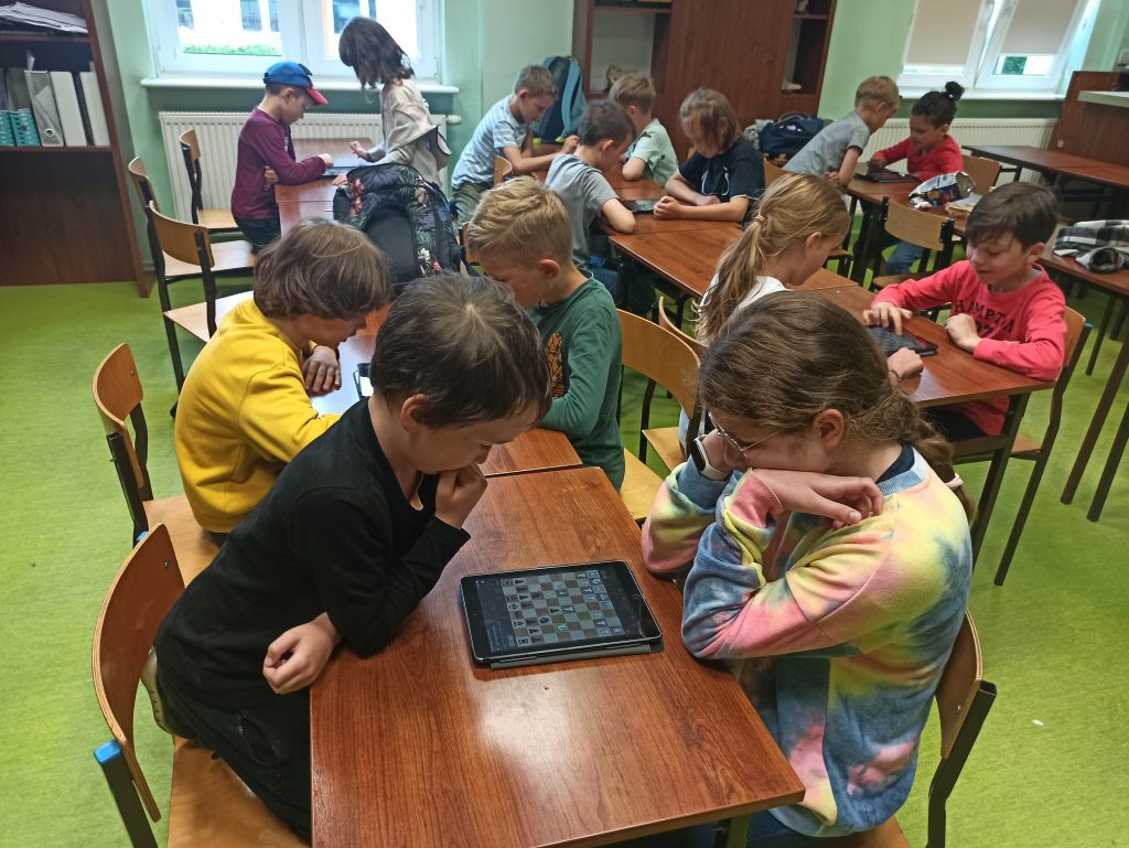 jednocześnie dzięki Ipadom i znakomitej aplikacji Lichess. Pozwoliło nam to rozegrać kaźdy