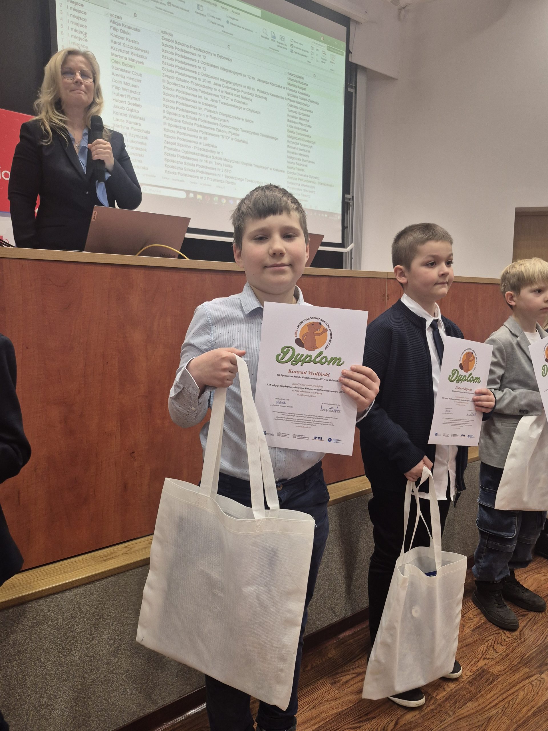 W piątek 14 marca uczniowie naszej szkoły Konrad i Stanisław udali się razem z Panią Martą Zacharzewską na małą wycieczkę do Torunia aby uczestniczyć w uroczystym wręczeniu Dyplomów za konkurs informatyczny Bóbr. Nasi uczniowie zajęli I (Stanisław) i II (Konrad) miejsce. Bardzo cieszymy się z sukcesu naszych wspaniałych trzecioklasistów.