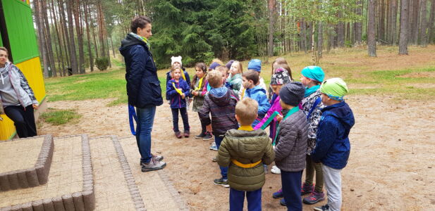 Zajęcia w środowisku niezdegradowanym, ciekawym przyrodniczo z uwagi na liczne lasy, jeziora rynnowe i bogatą roślinność. Dzieci miały bezpośredni kontakt i optymalne warunki do wielostronnego przeżywania, działania, poznawania środowiska przyrodniczego. Ważnym środkiem przekazu była zabawa z przyrodą i w przyrodzie.