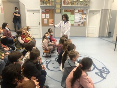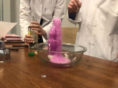 Klasy 2-6 po kolei zbierały się na holu, by przekonać się, że dwutlenek węgla choć go nie widać jest wokół nas, oraz że może on występować także w stałym stanie skupienia w formie suchego lodu.