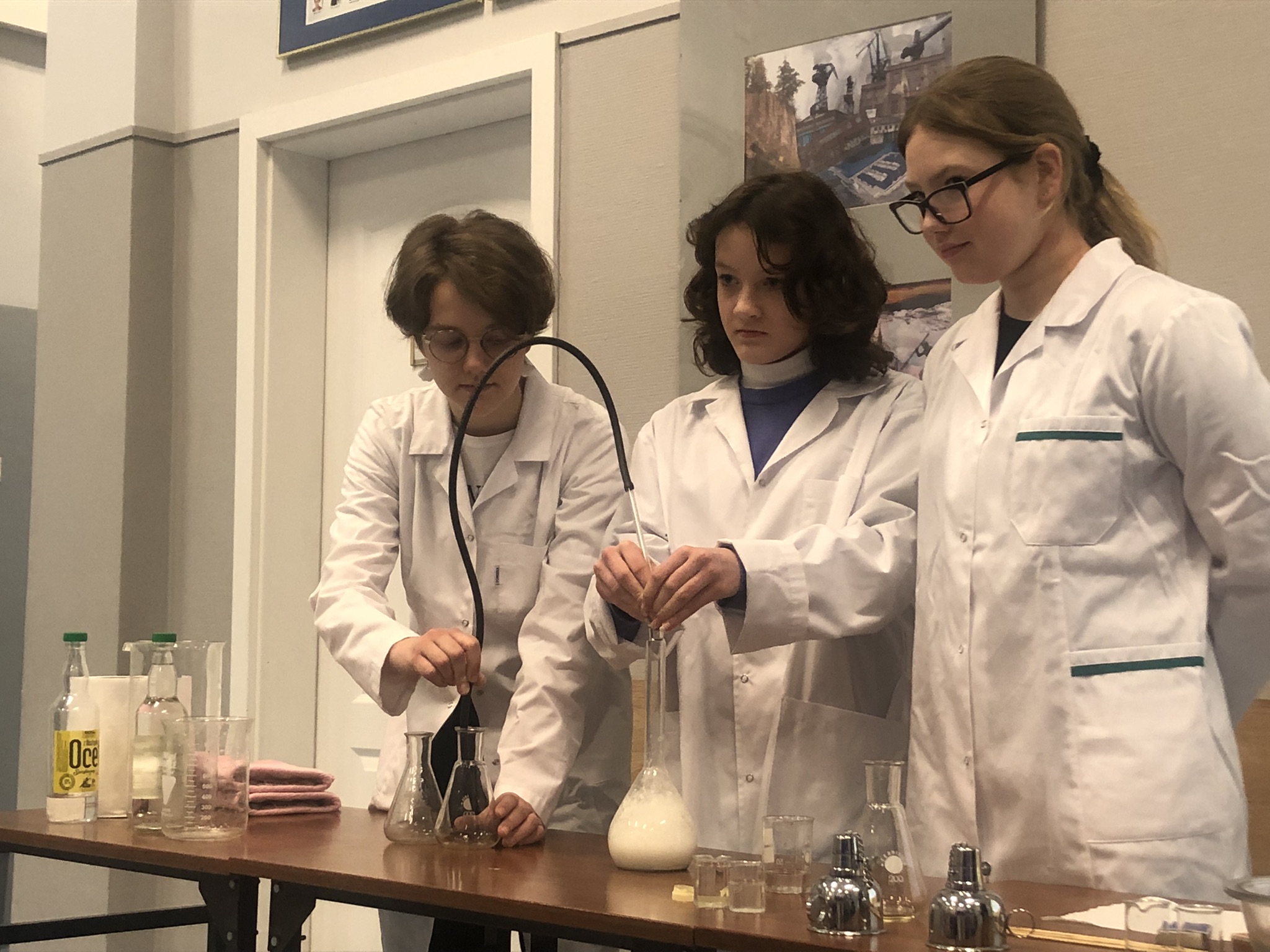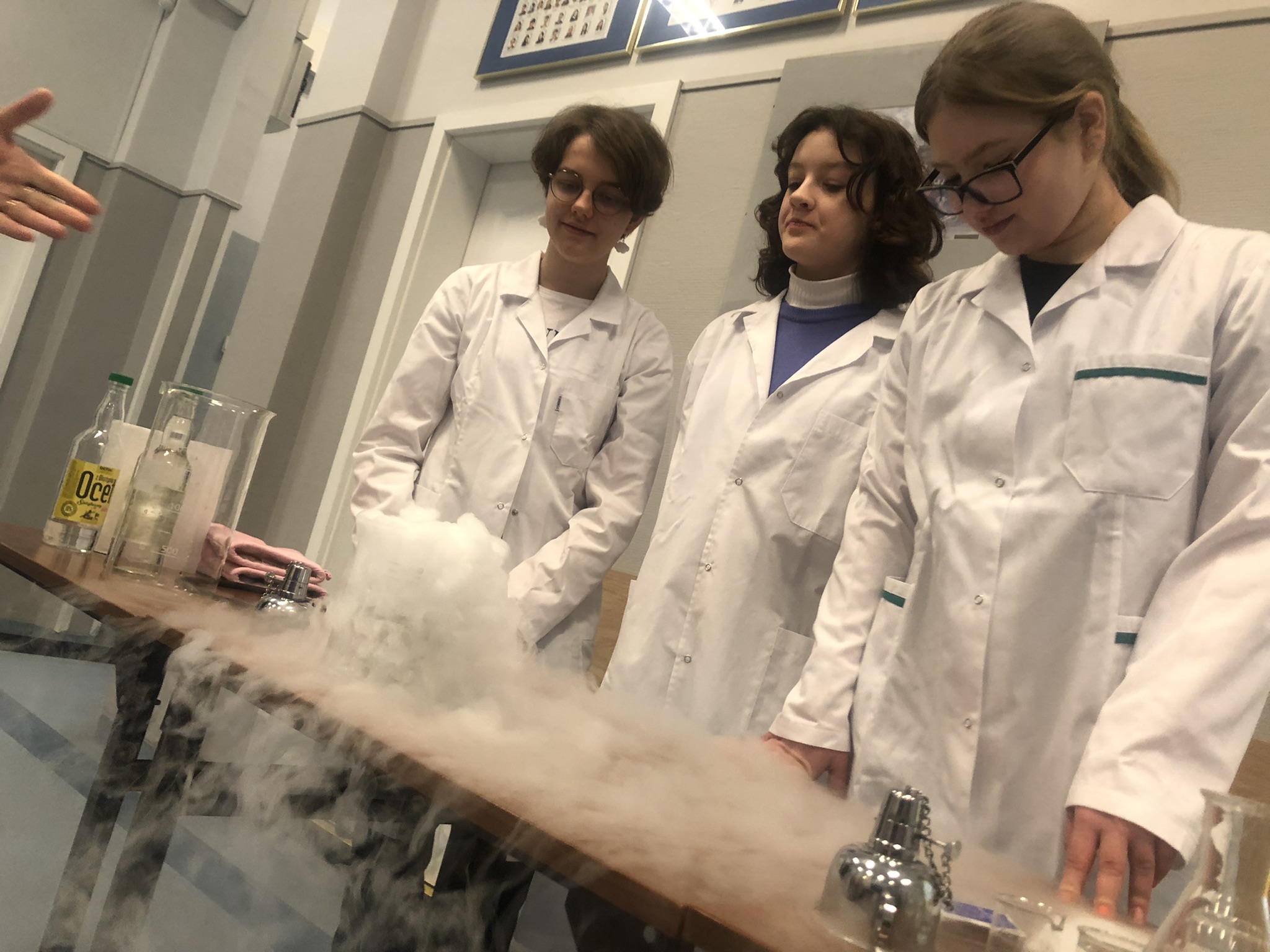 Klasy 2-6 po kolei zbierały się na holu, by przekonać się, że dwutlenek węgla choć go nie widać jest wokół nas, oraz że może on występować także w stałym stanie skupienia w formie suchego lodu.